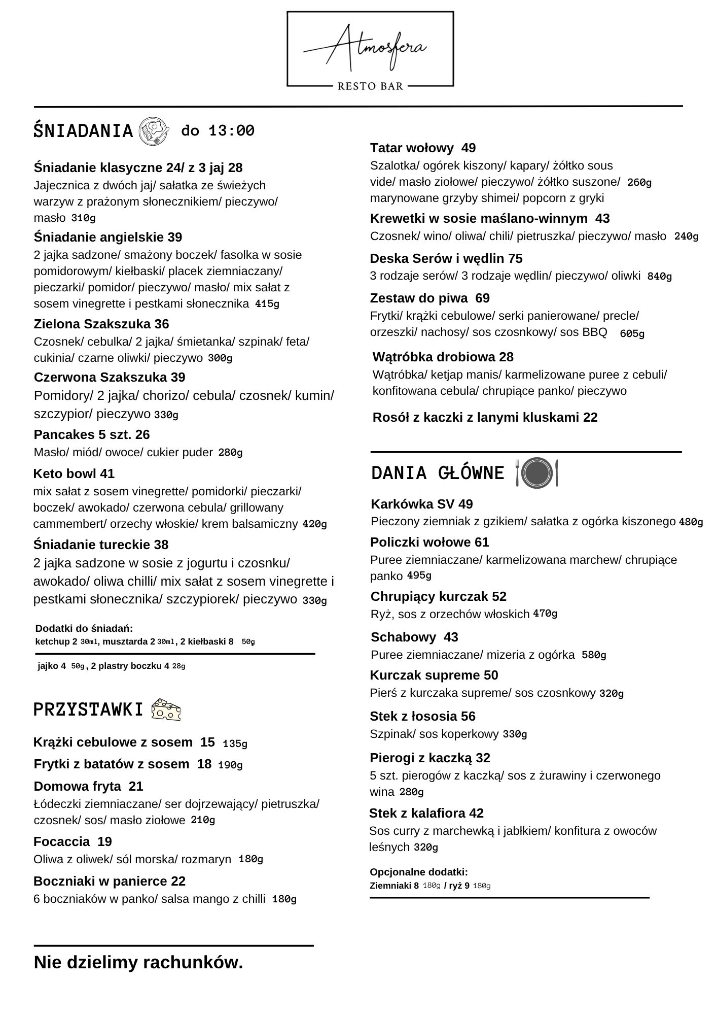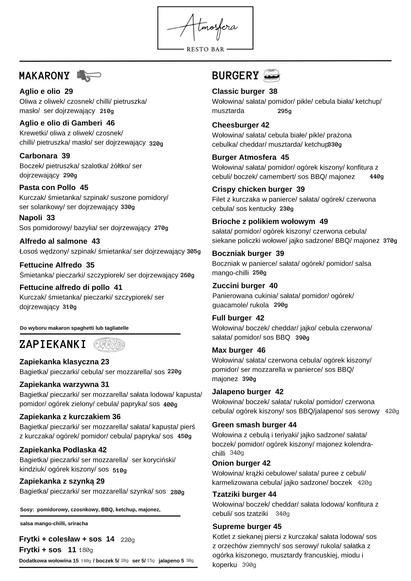 Zapraszamy do spróbowania naszego klasycznego menu, w którym znajdziesz dania kuchni europejskiej. W naszym menu znajdują się dania kuchni polskiej czy włoskiej. Nie zabraknie też tradycyjnego schabowego, pizzy czy makaronów 🙂